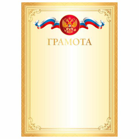 Грамота BRAUBERG предназначена для награждения за успехи в учебе, спорте, трудовой деятельности.Изготовлена из импортного мелованного картона. Плотность картона в 200 г/м2. позволяет печатать текст на принтере (кроме струйного). Грамота оформлена в соответствии со всеми стандартами, что придает ей официальный статус. Имеется изображение российской символики. Формат А4 позволяет вставить грамоту в рамку и расположить на удобном месте.