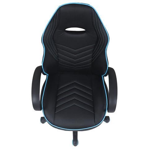 Кресло компьютерное BRABIX "Flame GM-004", экокожа, черное/голубое, 532498