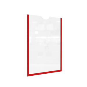 Настенный слайд-карман на красном сигнальном скотче для использования в помещении с большим потоком посетителей. Комплект из 10-ти штук значительно упрощает работу торгового зала, офиса, сферы услуг.