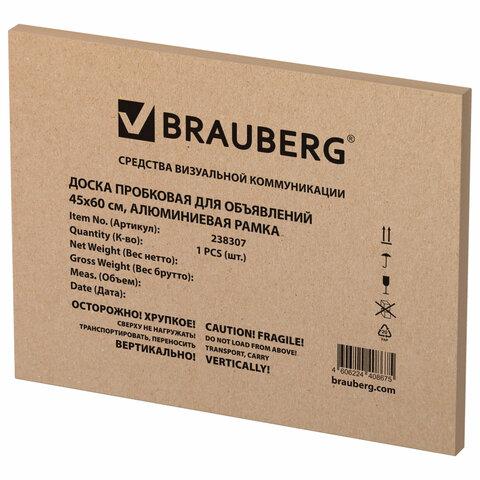 Доска пробковая для объявлений 45х60 см, алюминиевая рамка, BRAUBERG Extra, 238307