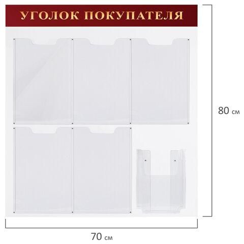 Доска-стенд "Уголок покупателя" (70х80см),5 плоских карманов А4 + объемный карман А5,BRAUBERG,291098