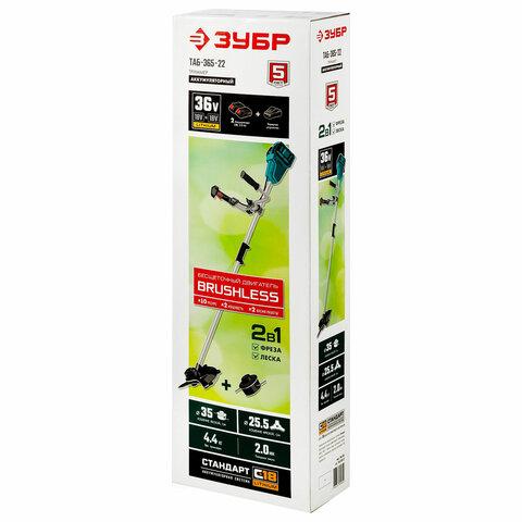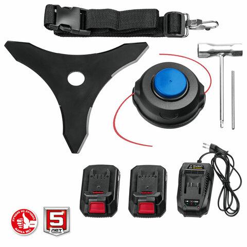 Триммер АККУМУЛЯТОРНЫЙ ЗУБР, с двумя аккумуляторами, 7000 об/мин, ширина скашивания 35 см, ТАБ-365-22