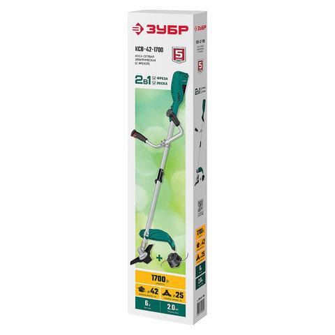 Триммер электрический ЗУБР КСВ-42-1700, 1700 Вт, 7500 об/мин, ширина скашивания 42 см, КСВ-42-1700