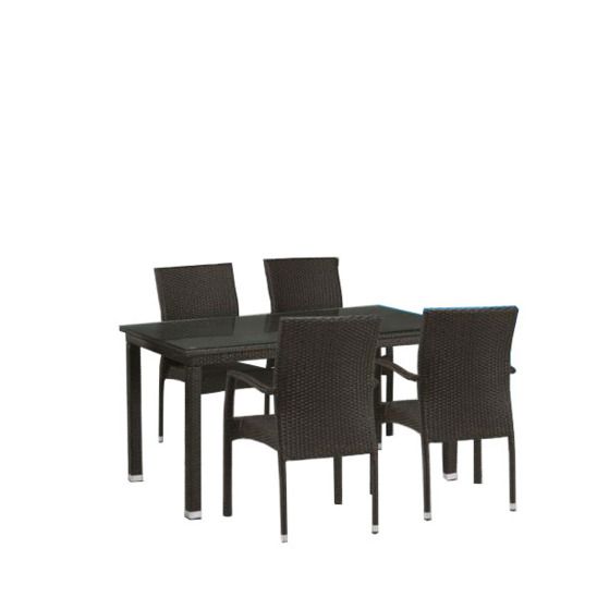 В составе комплекта: стол и 4 стула с подушками. Высококачественная лоза из полиротанга коричневого цвета стойкая к любым атмосферным явлениям. Крепкий стальной каркас с полимерным антивандальным покрытием и отличным качеством сварки. Изделие сплетено вручную нашими мастерами под жестким контролем качества на каждом этапе производства. Лоза максимально приближена по рельефу и текстуре к естественному материалу. Идеально подходит для использования на улице и внутри помещения в любую погоду. Не боится воды, солнца и минусовой температуры.