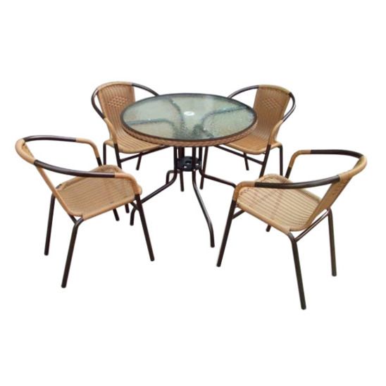 Комплект с четырьмя стульями с ротангом пшеничного цвета и круглым столом с красивой оплеткой по периметру произведут благоприятное действие на каждого человека.