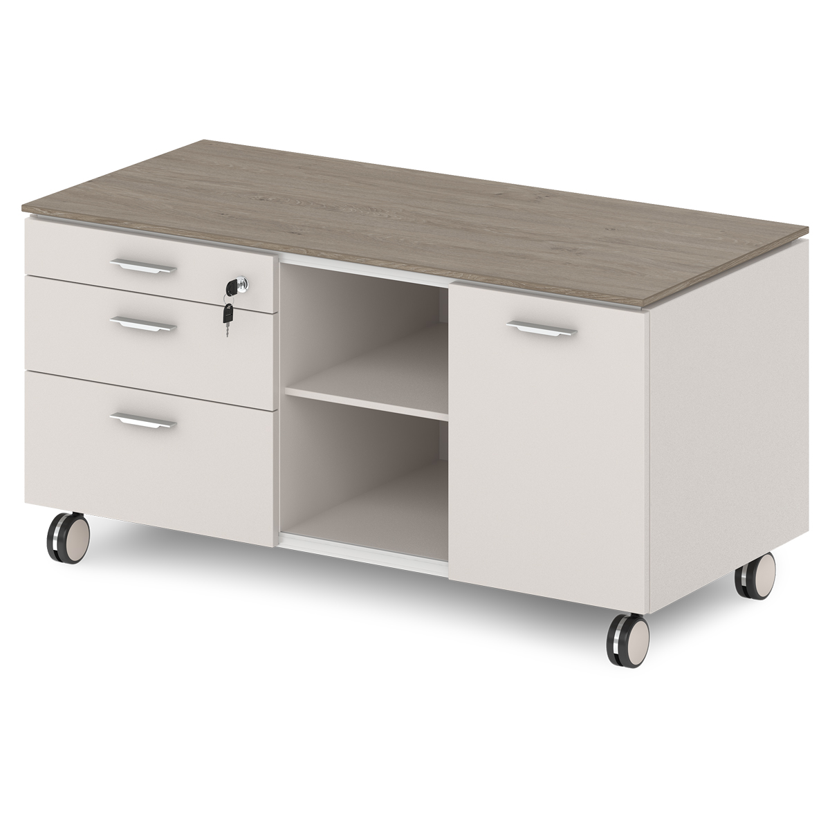 Офисная тумба подкатная "Греденция" с метабоксами, замком на 1 ящик, нишей и дверью-купе. На фото - левая тумба.