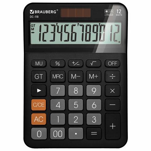 Калькулятор настольный BRAUBERG DC-118-BK (175х126 мм), 12 разрядов, двойное питание, черный, 272962