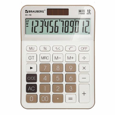 Калькулятор настольный BRAUBERG DC-118-BG (175х126 мм), 12 разрядов, двойное питание, бежевый, 272963