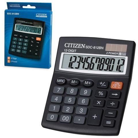 Калькулятор настольный CITIZEN SDC-812BN, МАЛЫЙ (124x102 мм), 12 разрядов, двойное питание