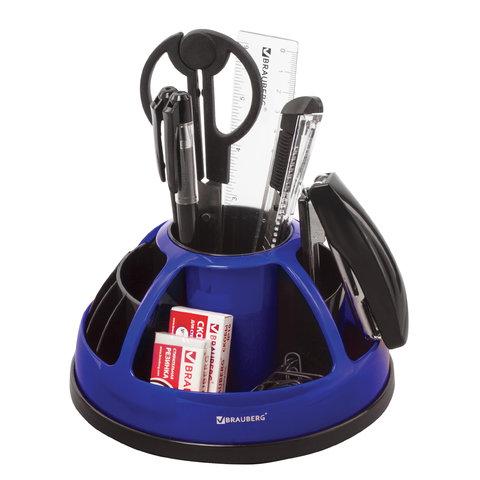 Канцелярский набор BRAUBERG "Микс", 10 предметов, вращающаяся конструкция, черно-синий, блистер, 231930