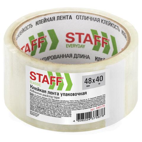 Клейкая лента упаковочная 48 мм x 40 м, прозрачная, толщина 40 микрон, STAFF CLASSIC, 440176