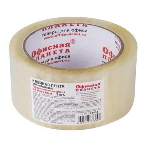 Клейкая лента упаковочная, 48 мм х 66 м прозрачная, толщина 45 микрон, ОФИСНАЯ ПЛАНЕТА, 222404