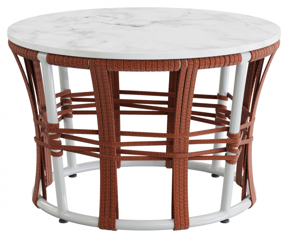 Столик кофейный плетеный Nido белый, 14, белый мрамор Каррара