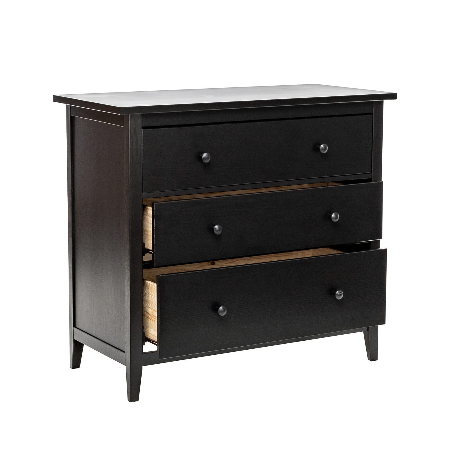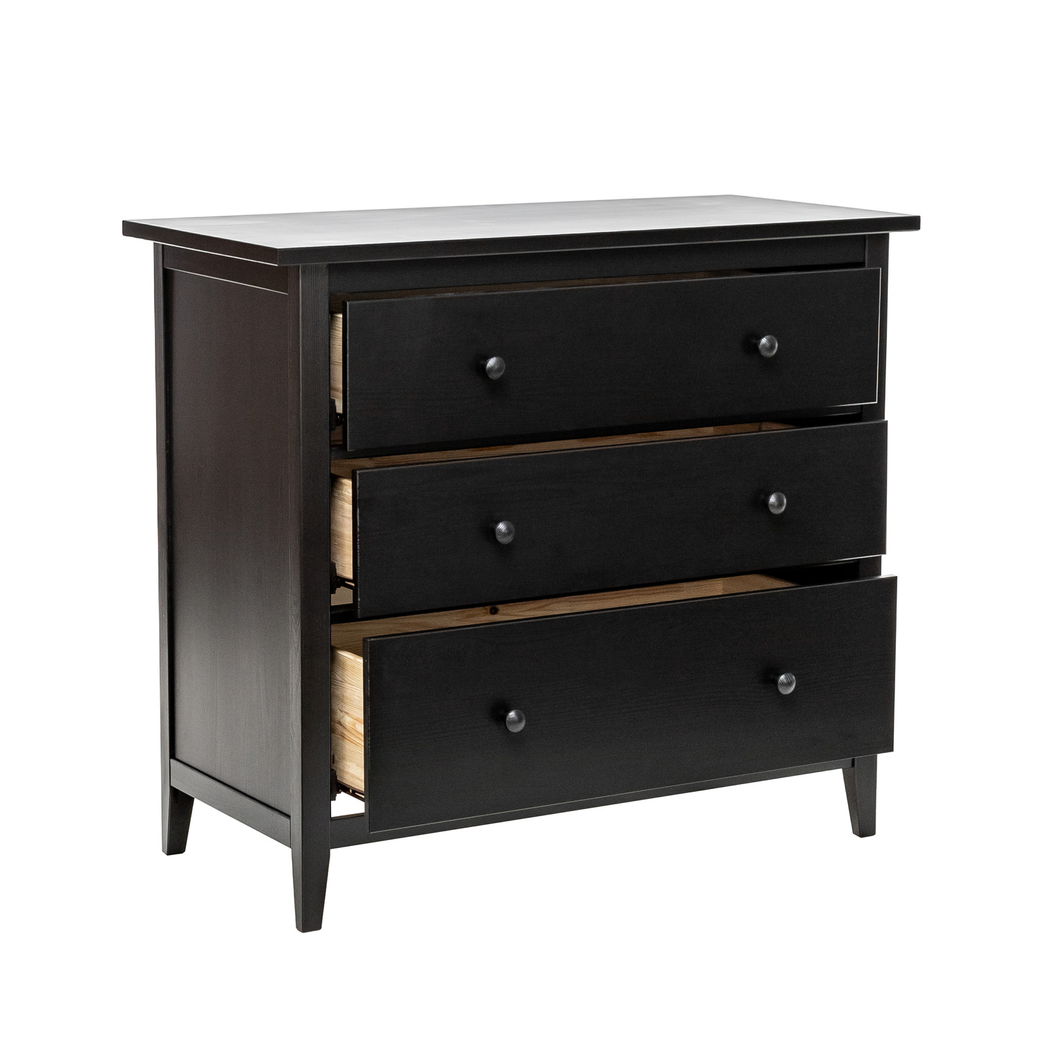 Деревянный комод с тремя ящиками станет вашим незаменимым помощником. 3 вместительных выдвижных ящика для объемных вещей и других мелочей оснащены бесшумными направляющими полного выдвижения. Комод универсален: он подойдет в спальню, гостиную, прихожую. Такие небольшие тумбы с ящиками незаменимы на малогабаритной кухне. В них можно сложить посуду, вафельницу, миксер и другие принадлежности.