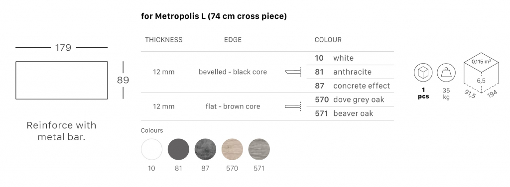 Столешница прямоугольная для подстолья Metropolis L антрацит