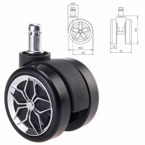 Колеса (ролики) BRABIX для кресла, прорезиненные, ХРОМ, КОМПЛЕКТ 5 шт., шток d 11 мм, черные, короб, 533088
