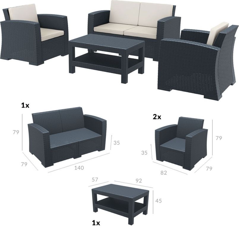 Комплект пластиковой плетеной мебели Monaco Lounge Set антрацит
