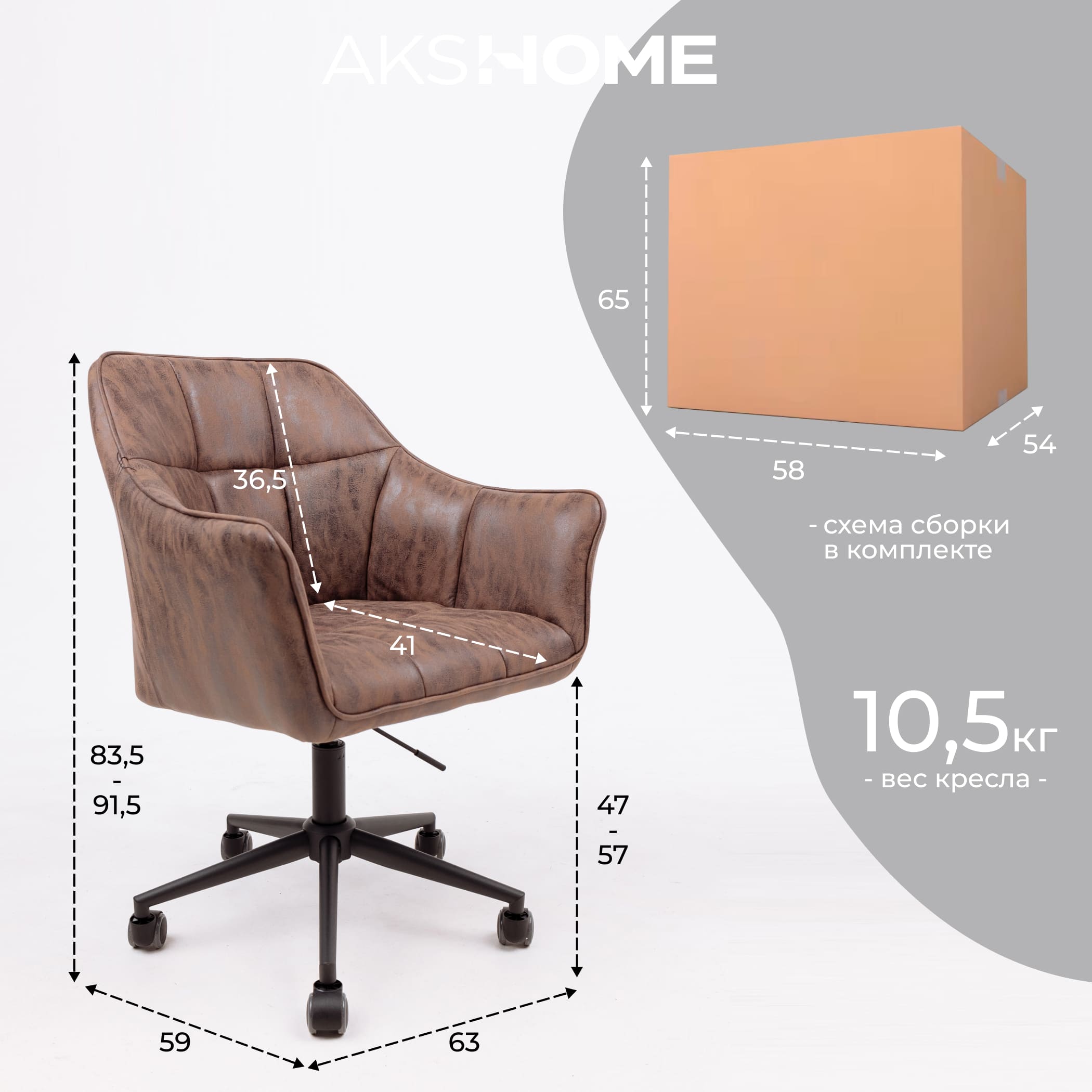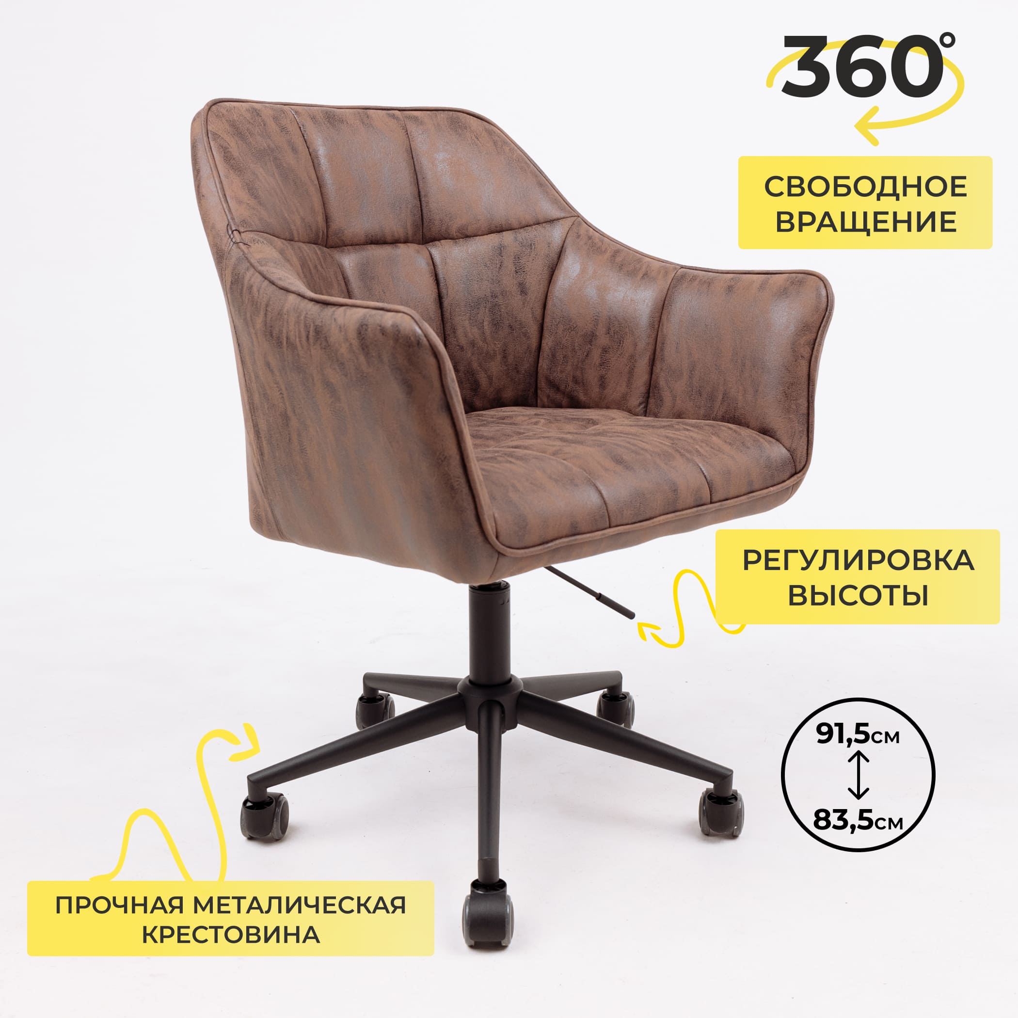 Наименование: Кресло BARREN, поворотное, ткань, винтажный коричневый/черный