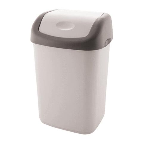 Ведро-контейнер 14 л с КАЧАЮЩЕЙСЯ КРЫШКОЙ, для мусора, ПОДВЕСНОЕ, 42х27х21 см, серый/графит, 327-СЕРЫЙ, 433270065