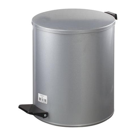 Ведро-контейнер для мусора с педалью УСИЛЕННОЕ, 15 л, кольцо под мешок, серое, оцинкованная сталь