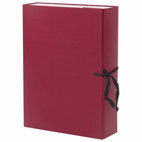 Короб архивный А4 (240х330 мм), 70 мм, 2 завязки, бумвинил, до 600 листов, бордовый, 122036