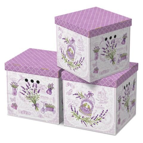 Короб для хранения из плотного микрогофрокартона 315х315х315 мм, КОМПЛЕКТ 3 шт., BRAUBERG HOME "Лаванда", 271817