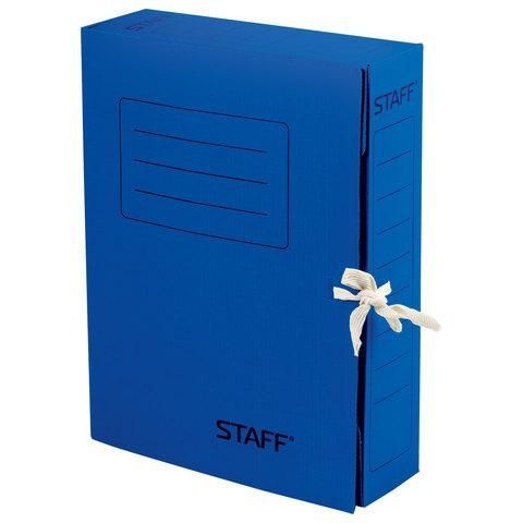 Папка архивная с завязками А4 (325х250 мм), 75 мм, до 700 листов, микрогофрокартон, СИНЯЯ, STAFF, 128870