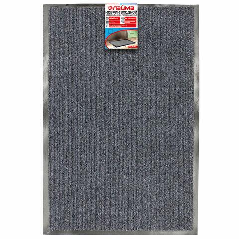 Коврик входной ворсовый влаго-грязезащитный LAIMA, 40х60 см, ребристый, толщина 7 мм, серый, 602861