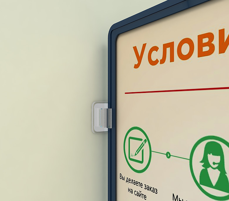 Подходит для крепления информационных материалов в пластиковых рамках А6-А1 формата.