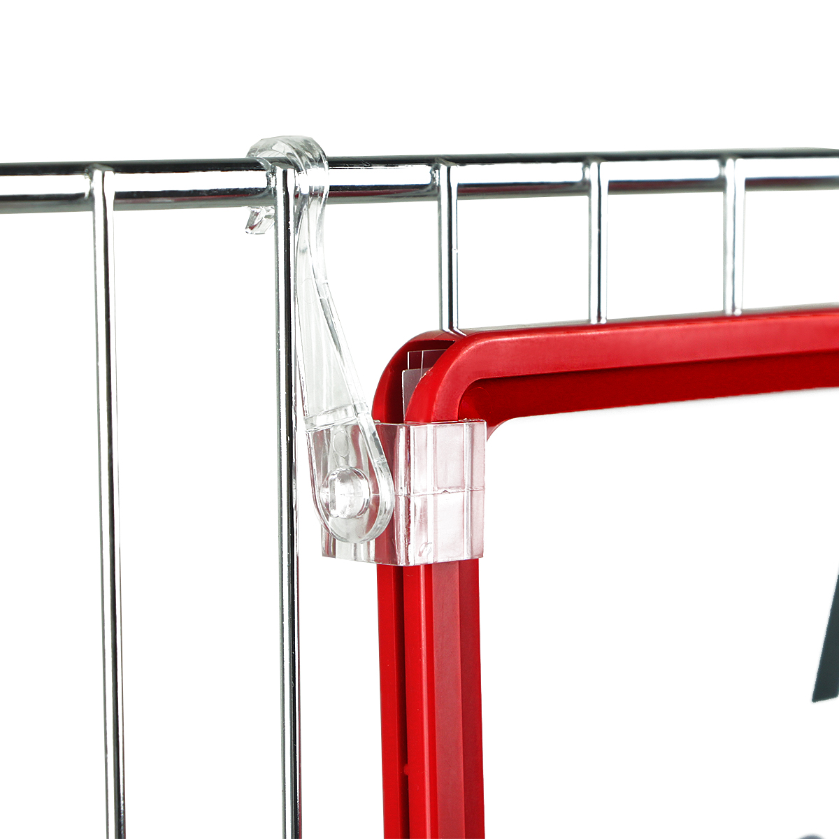 Крючок пластиковый F-CLIP-SW используется для подвешивания пластиковых рамок в подвесных системах, на накопительных металлических корзинах и любом другом проволочном оборудовании с диаметром проволоки до 9 мм.