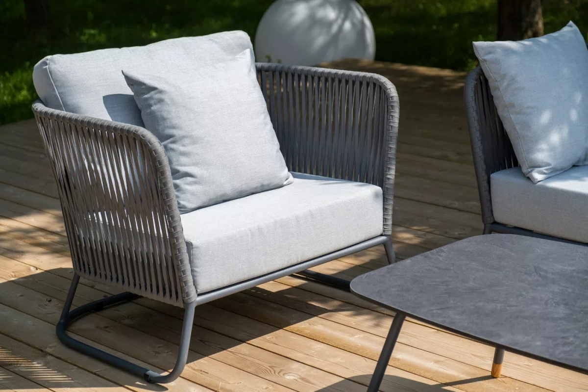 "Багамы" кресло плетеное из роупа, каркас алюминий темно-серый (RAL7024) муар, роуп серый 15мм, ткань светло-сераяцвет Серый