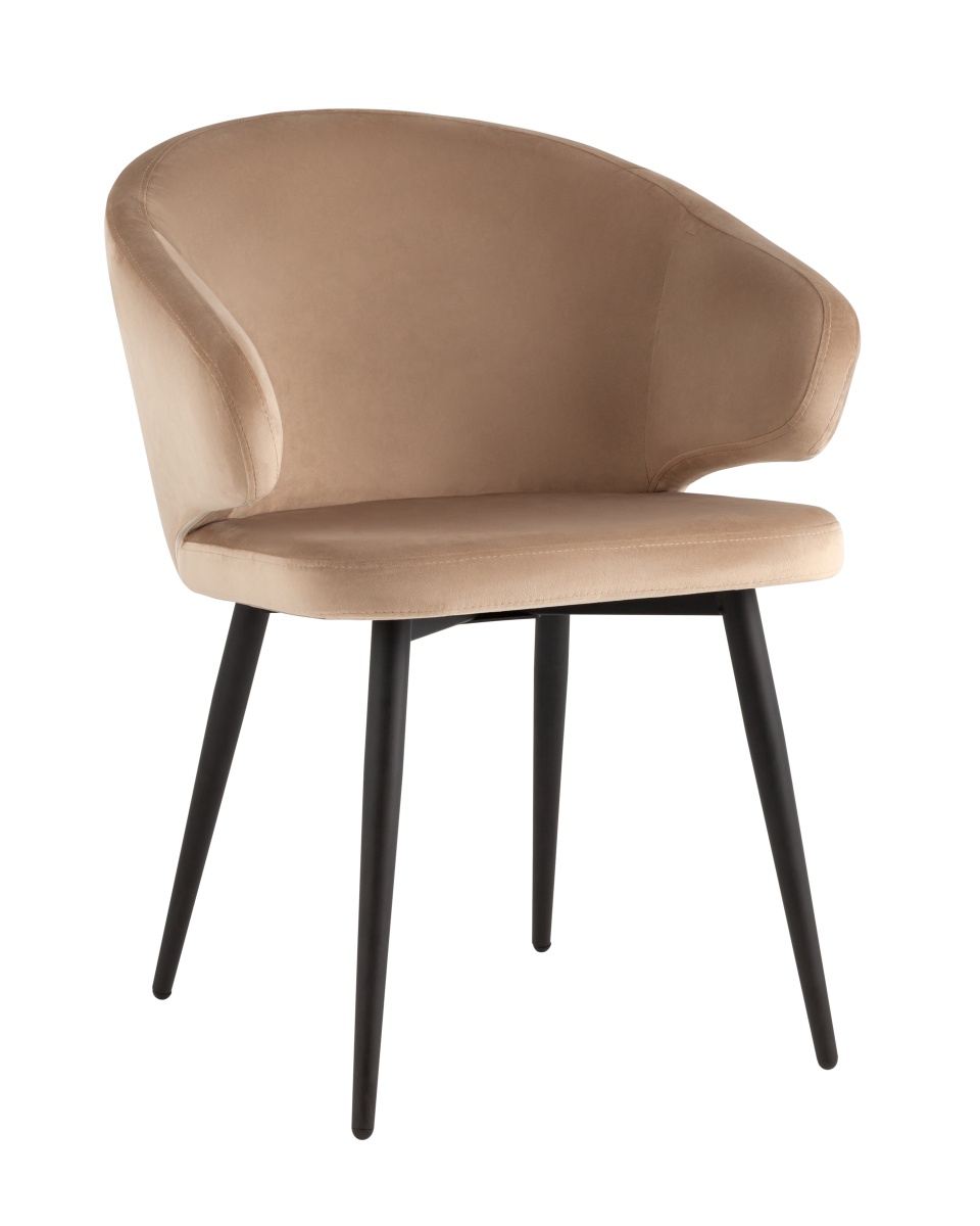 Стул с подлокотниками Codo велюр капучино с мягкой спинкой и сиденьем и черными ножками