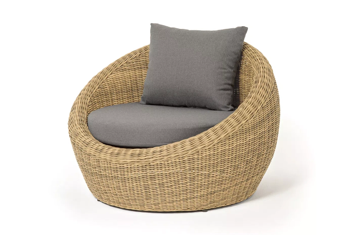 В комплекте с уличным ротанговым креслом идут мягкие подушки со съёмными чехлами серого оттенка. Они пошиты из полиэстера, который не боится повышенной влажности благодаря наличию влагоотталкивающей пропитки. Плотность ткани составляет 300гр/м2.