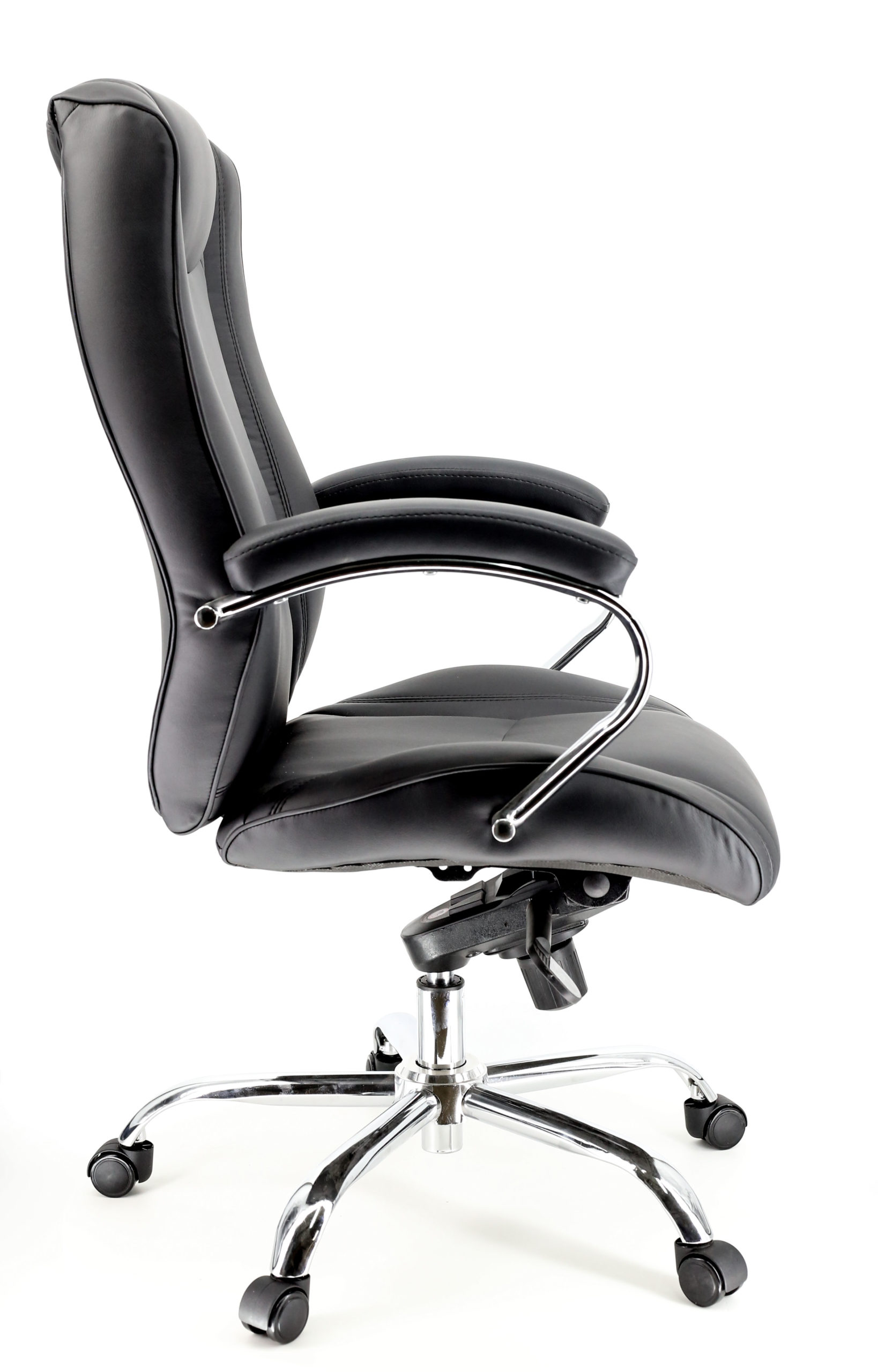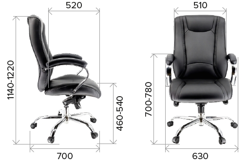 - Крестовина из хромированной стали и хромированные металлические подлокотники с накладками из экокожи добавляют элегантности и гарантируют надежность и стабильность.