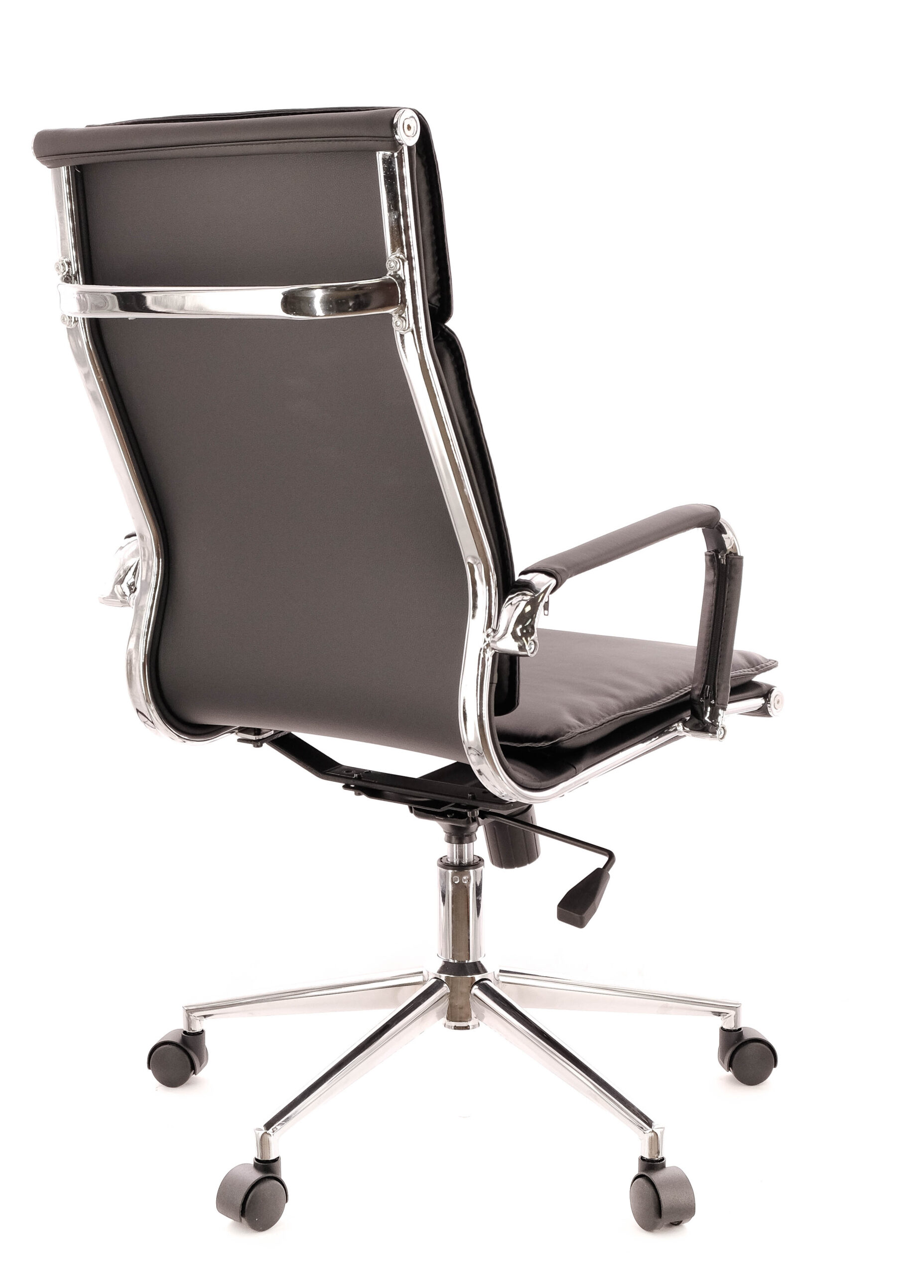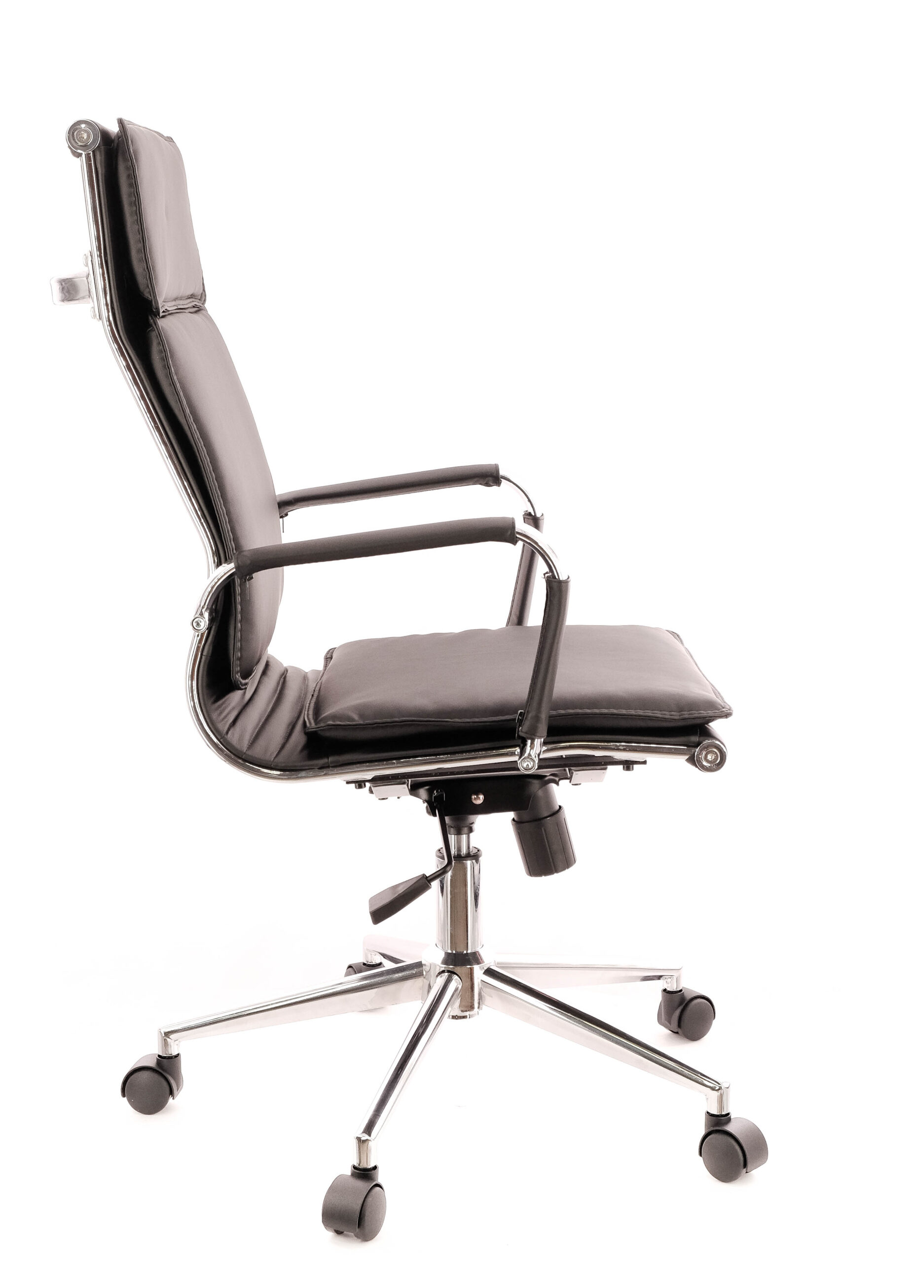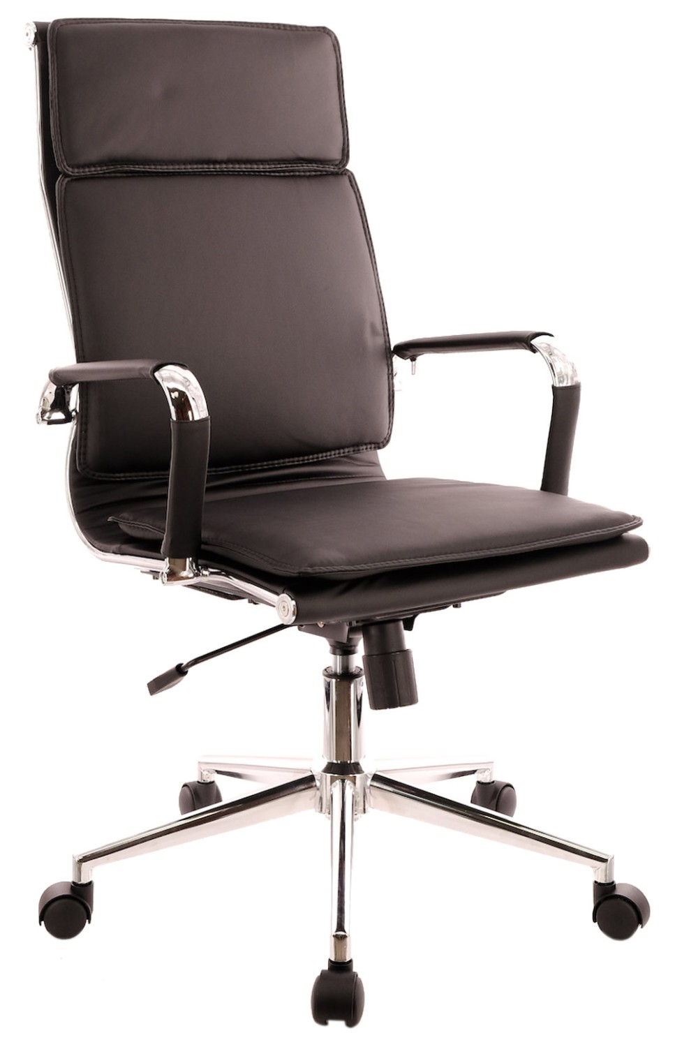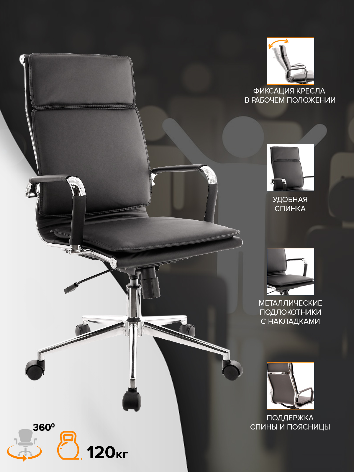 - Подлокотники: Металлические хромированные подлокотники с накладками из экокожи придают элегантности и обеспечивают дополнительный комфорт во время работы.