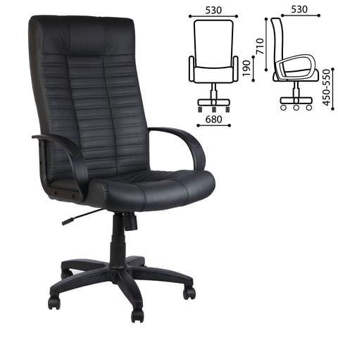 Кресло офисное "Атлант", кожа, монолитный каркас, черное К-01