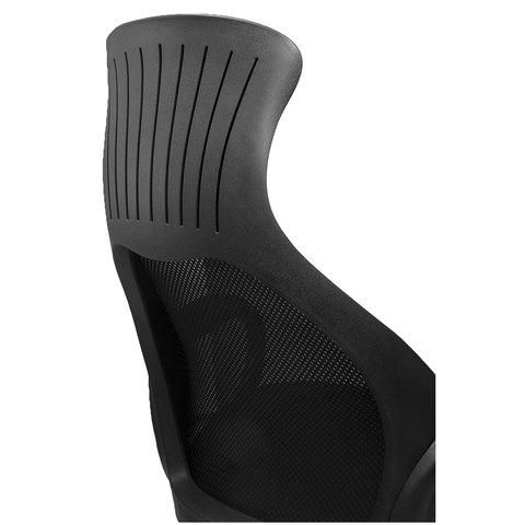 Спинка, выполненная из прочной акриловой сетки за счет натяжения и формы каркаса, создает мягкую поддержку спины, не препятствуя циркуляции воздуха.