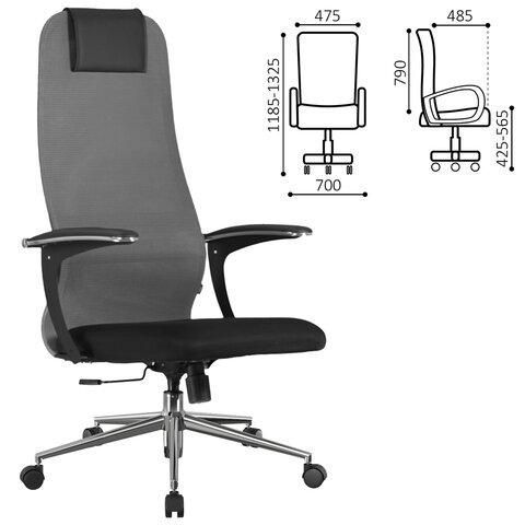 Кресло офисное BRABIX PREMIUM "Ultimate EX-801" хром, плотная двойная сетка Х2, черное/серое, 532918