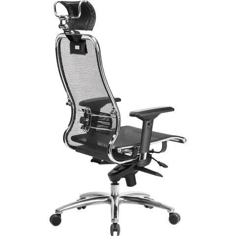Кресло офисное МЕТТА "SAMURAI" S-3, с подголовником, сверхпрочная ткань-сетка, черное