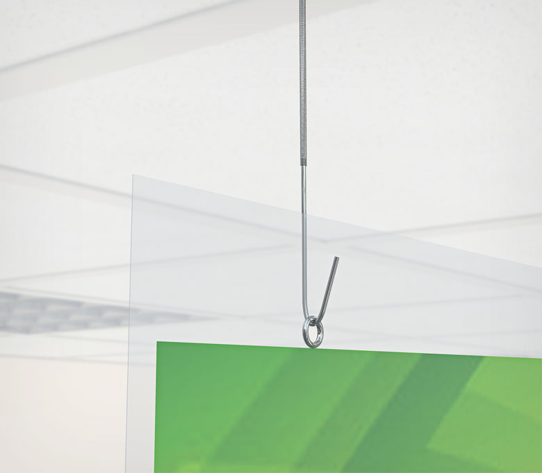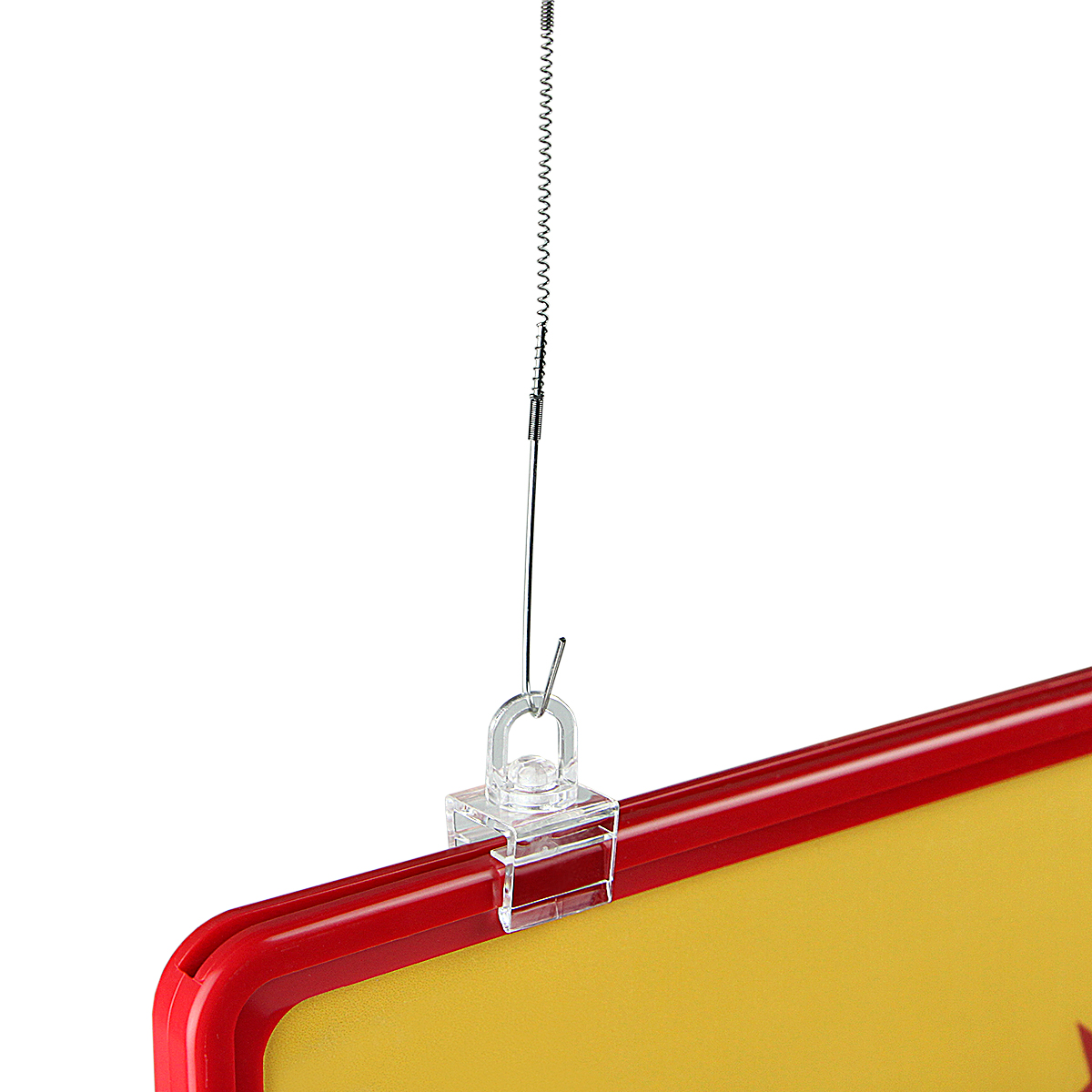 Изготовлен из прочной металлической проволоки толщиной 2 мм. Гибкая конструкция позволяет легко регулировать высоту подвешивания от 170 мм до 1,2 м, адаптируя размещение рекламных материалов под нужные условия.