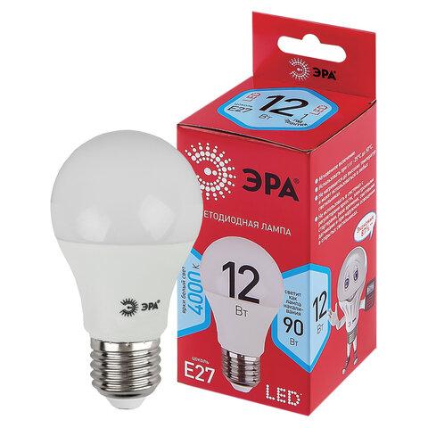 Лампа светодиодная ЭРА, 12(70)Вт, цоколь Е27, груша, нейтральный белый, 25000 ч, LED A60-12W-4000-E27, Б0049636