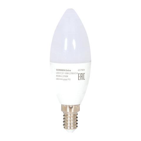 Лампа светодиодная SONNEN EXTRA, 10 (85) Вт, Е14, свеча, теплый белый, 30000 ч, LED C37-10W-2700-Е14, 457904