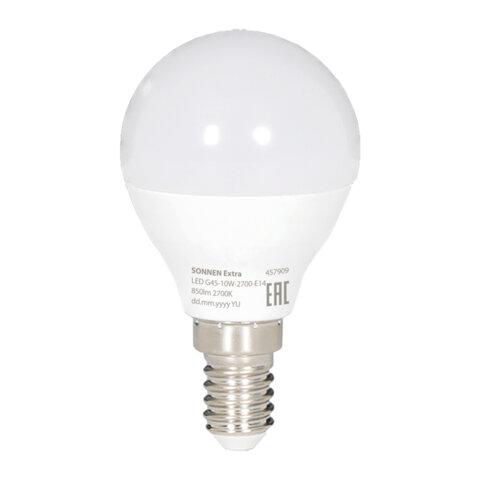 Лампа светодиодная SONNEN EXTRA, 10 (85) Вт, E14, шар, теплый белый, 30000 ч, LED G45-10W-2700-Е14, 457909