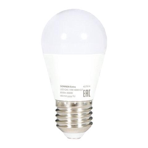 Лампа светодиодная SONNEN EXTRA, 10 (85) Вт, E27, шар, нейтральный белый, 30000 ч, LED G45-10W-4000-Е27, 457914