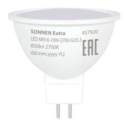 Лампа светодиодная SONNEN EXTRA, 10 (90) Вт, GU5.3, софит, теплый белый, 30000 ч, LED MR16-GU5.3-10W-2700, 457920