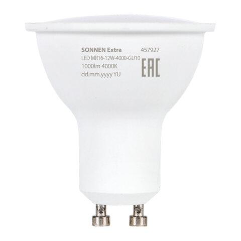 Лампа светодиодная SONNEN EXTRA, 12 (110) Вт, GU10, софит, нейтральный белый, 30000 ч, LED MR16-GU10-12W-4000, 457927