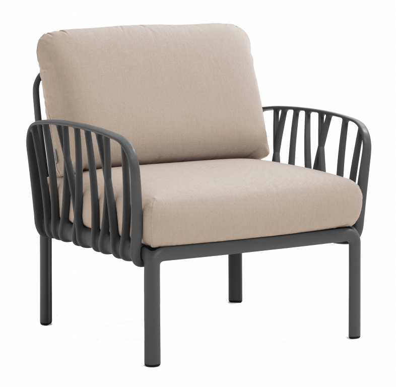 Кресло пластиковое с подушками Komodo Poltrona антрацит, холст