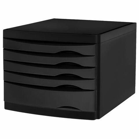 Бокс с 5 выдвижными лотками, корпус чёрный, лотки черные, 235х300х355 мм, BRAUBERG "Office-Expert", 238043