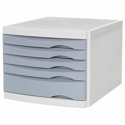 Бокс с 5 выдвижными лотками, корпус светлый, лотки серые, 235х300х355 мм, BRAUBERG "Office-Expert", 238045