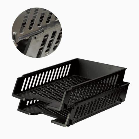 Лотки горизонтальные для бумаг, НАБОР 2 шт. (358х272х177,5 мм), сетчатые, черные, BRAUBERG-MAXI, 231360